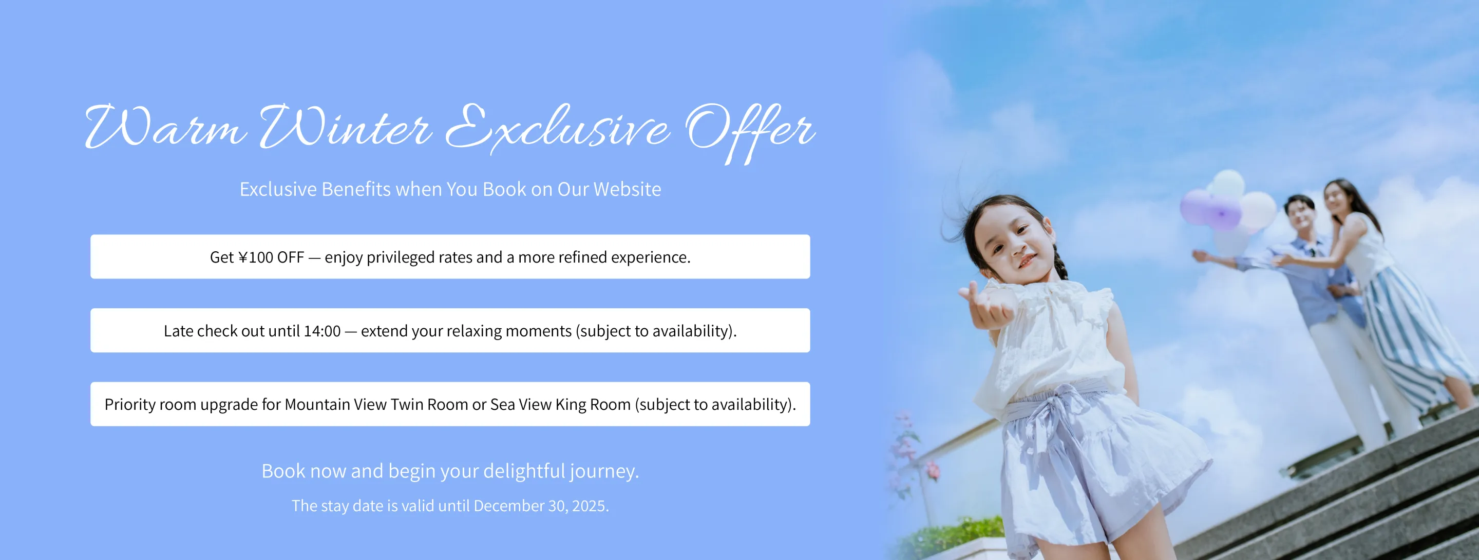 Each guest room boasts a spacious area starting from approximately 50 square meters, equipped with facilities that meet international top-tier standards. Every room offers a stunning, unobstructed view of the sea or mountains, with a window width exceeding 5 meters. Sunlight filters through the floor-to-ceiling windows, casting a soft glow over the chic and modern design of the rooms and suites. Inspired by the design philosophy of local culture about "embracing the sea and mountains, where the azure waves rise," the rooms artfully blend a variety of natural materials and elements. This creates a dynamic and versatile space, immersing guests in an atmosphere of pure natural beauty.