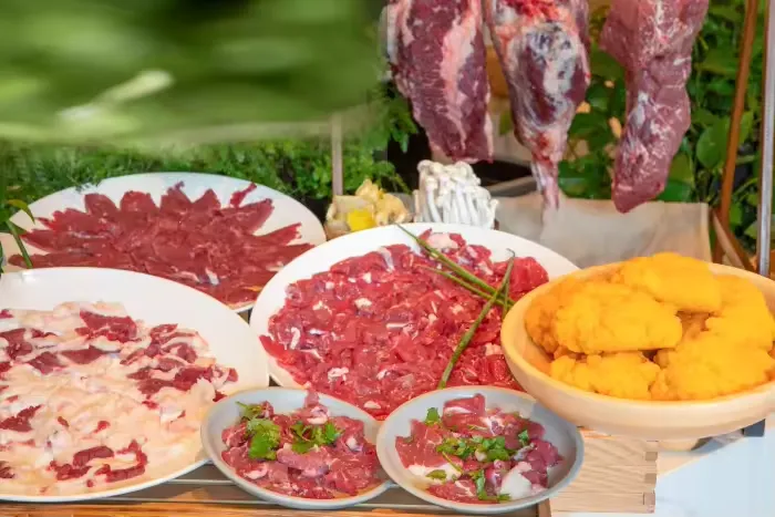 主厨以世代相传的技艺,将精选鲍鱼煨至晶莹剔透,手工花胶发制得温润如玉。烧鹅沿用古法挂炉技艺,皮色金红酥脆;白鸡经三浸三晾工艺,皮滑肉嫩如脂。每一味食材都承载着匠心传承,十余种山海珍馐在特制陶煲中层层相叠,以文火慢煨让秘制鲍汁缓缓渗透,恰似将岭南饮食文化的精髓都凝聚于这一锅之中。