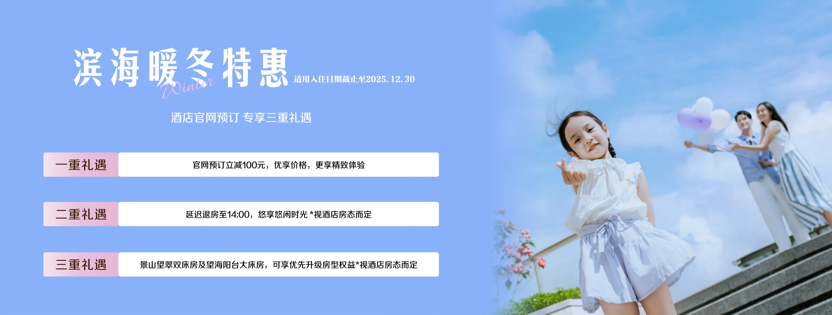 263间精美客房和套房 客房面积每间约50平方米起,设施配置对标国际一线标准,所有客房均拥有面宽超5米的一线海景或山景景观资源。阳光透过落地窗,让设计纯粹时尚的客房及套房染上一层柔光。秉承“海涵山抱、碧海潮生”的设计理念,巧妙融合多种天然材质与元素,令客房空间灵动多变,让旅客置身纯粹自然的气氛中。